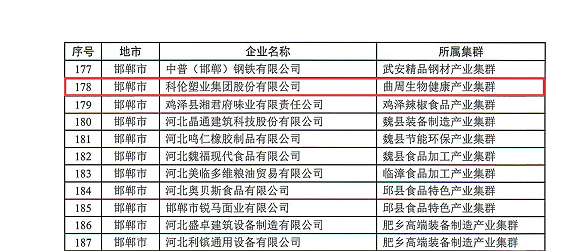 科倫塑業(yè)集團(tuán)股份有限公司獲評河北省特色產(chǎn)業(yè)集群“領(lǐng)跑者”企業(yè)